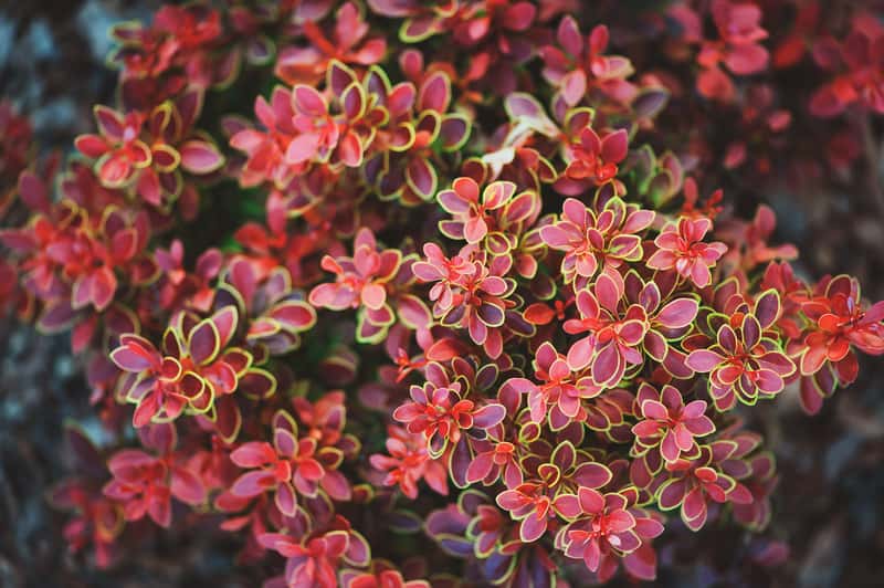 - Liście: Liście są małe, owalne i intensywnie czerwone lub purpurowe. Niektóre odmiany mogą mieć liście z delikatnym połyskiem lub czerwonobrązowym odcieniem. Jesienią kolor liści staje się jeszcze bardziej intensywny, co dodaje ogrodowi koloru na zakończenie sezonu.
