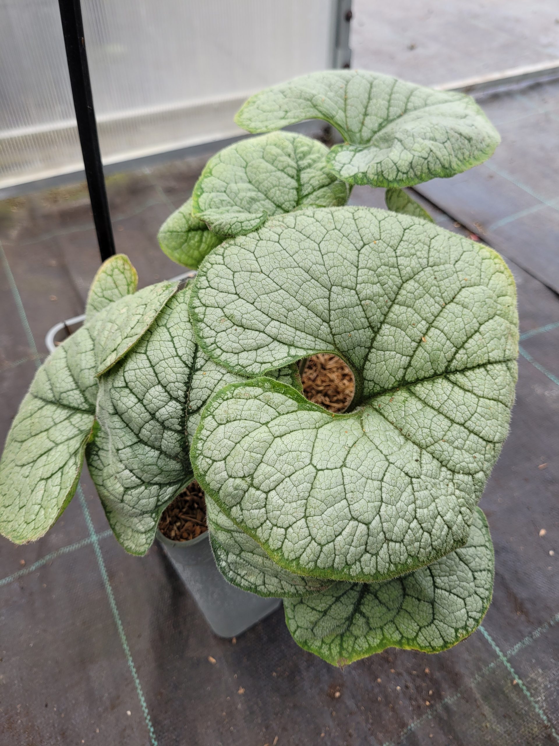 - Liście: Liście są duże, sercowate, z atrakcyjnym srebrzystym wzorem na zielonym tle. To sprawia, że roślina jest bardzo dekoracyjna przez cały sezon wegetacyjny.