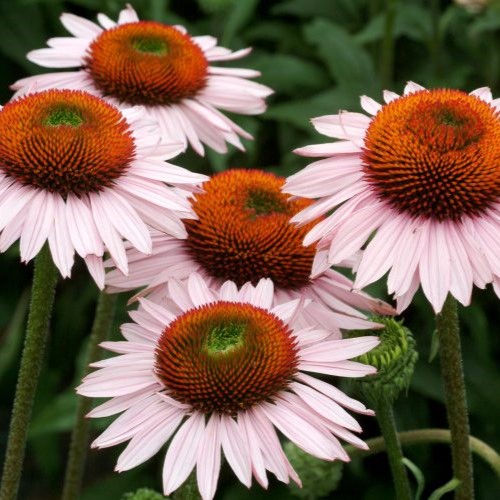 Jeżówka 'Hope’ to bylina o wzniesionym, mocnym pokroju. Tworzy zwarte kępy, które mogą osiągnąć wysokość około 60-90 cm. Kwiaty pojawiają się obficie od lipca do września. Płatki mają piękny, jasnoróżowy kolor, który delikatnie jaśnieje w miarę dojrzewania. Otaczają duży, wypukły środek w kolorze pomarańczowo-brązowym. Liście są eliptyczne, ciemnozielone, szorstkie w dotyku, tworzące u podstawy kępy. Roślina ma mocne pędy, które nie uginają się pod ciężarem kwiatów, co sprawia, że jest stabilna i nie wymaga podpór.