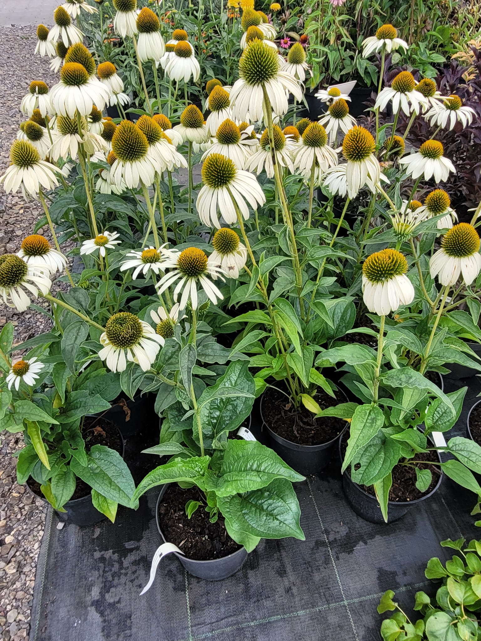 - Wygląd: Jeżówka 'White Swan’ charakteryzuje się dużymi, białymi kwiatami z ciemniejszymi, pomarańczowymi środkami. Kwiaty mają charakterystyczny kształt stożka i zazwyczaj pojawiają się latem, od czerwca do września.