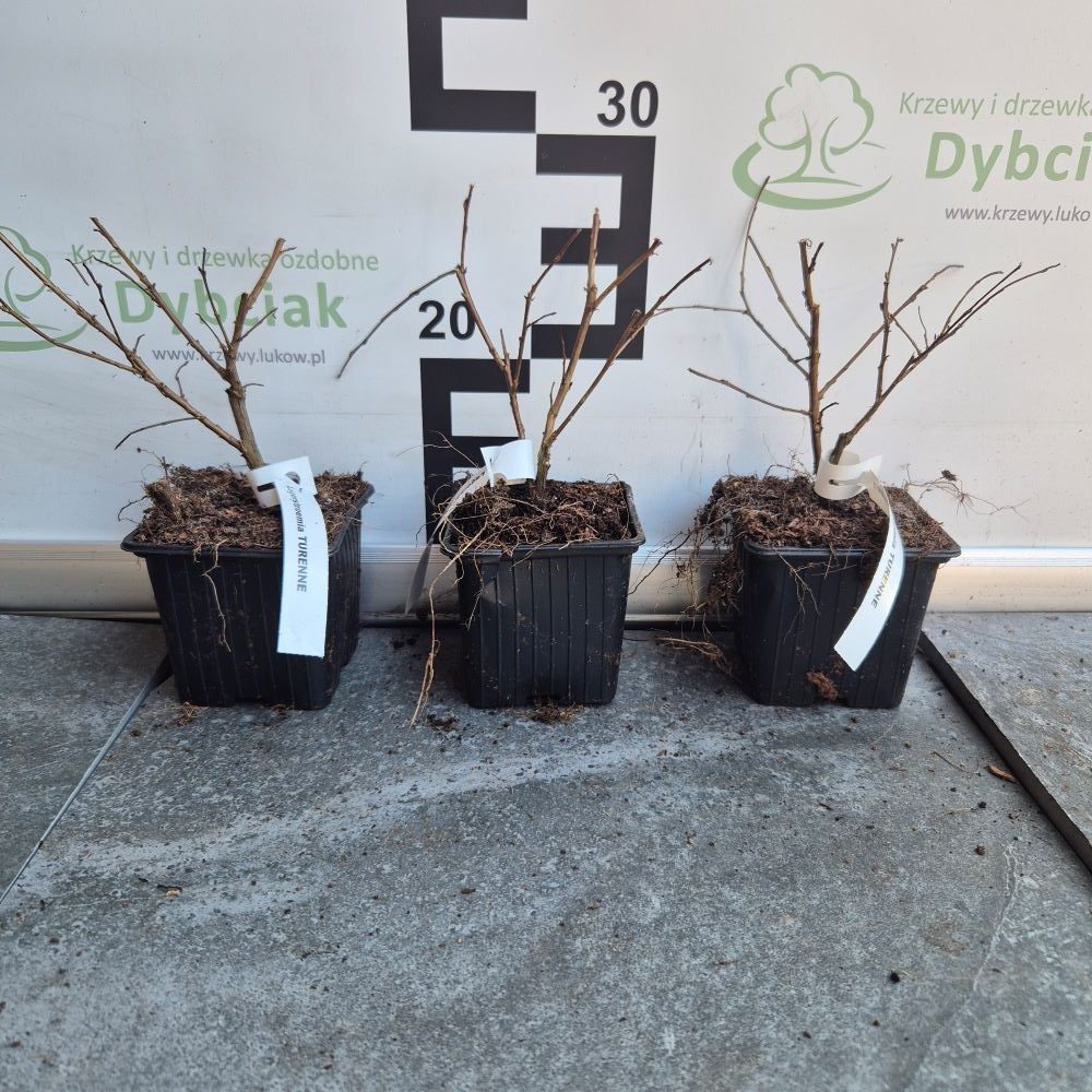 ’Turenne’ to odmiana o średnim tempie wzrostu i krzaczastym, zwartym pokroju, osiągająca ok. 2–3 metry wysokości. W odpowiednich warunkach może być prowadzona również jako niewielkie drzewko, z jednym lub kilkoma pniami. Kora rośliny z wiekiem staje się dekoracyjna – gładka, lekko łuszcząca się, o jasnobrązowym odcieniu.
