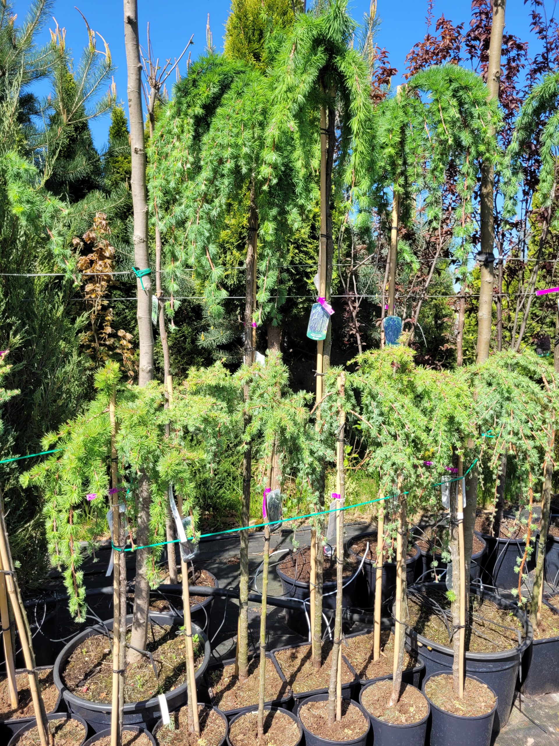 Modrzew Pendula, czyli modrzew płaczący, to odmiana modrzewia europejskiego (łac. Larix decidua), która wyróżnia się efektownymi, zwisającymi gałęziami. Jest to niewielkie drzewo o płaczącym pokroju, często szczepione na pniu, dzięki czemu prezentuje się wyjątkowo dekoracyjnie. Idealnie nadaje się do ogrodów przydomowych i parków jako soliter.
