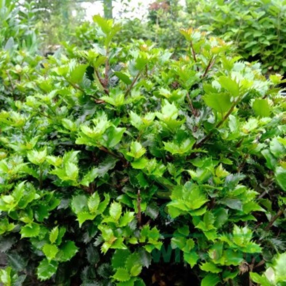 🌿 Kwiaty i owoce – Jest to odmiana męska, co oznacza, że nie zawiązuje owoców, ale może być zapylaczem dla żeńskich odmian ostrokrzewu Meservy, takich jak 'Blue Princess’.