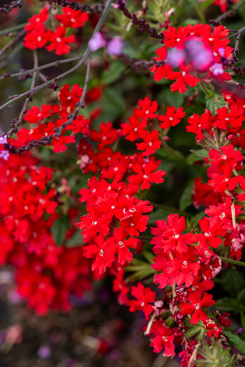 Kwiaty to jej główna ozdoba. Kwitnie bardzo obficie i nieprzerwanie od maja do pierwszych przymrozków. Drobne, rurkowate kwiaty zebrane są w gęste, spłaszczone kwiatostany na końcach pędów. Odmiany różnią się kolorem, ale najczęściej spotykane są odcienie czerwieni, fioletu, różu i bieli. Kwiaty są bardzo atrakcyjne dla pszczół i motyli.